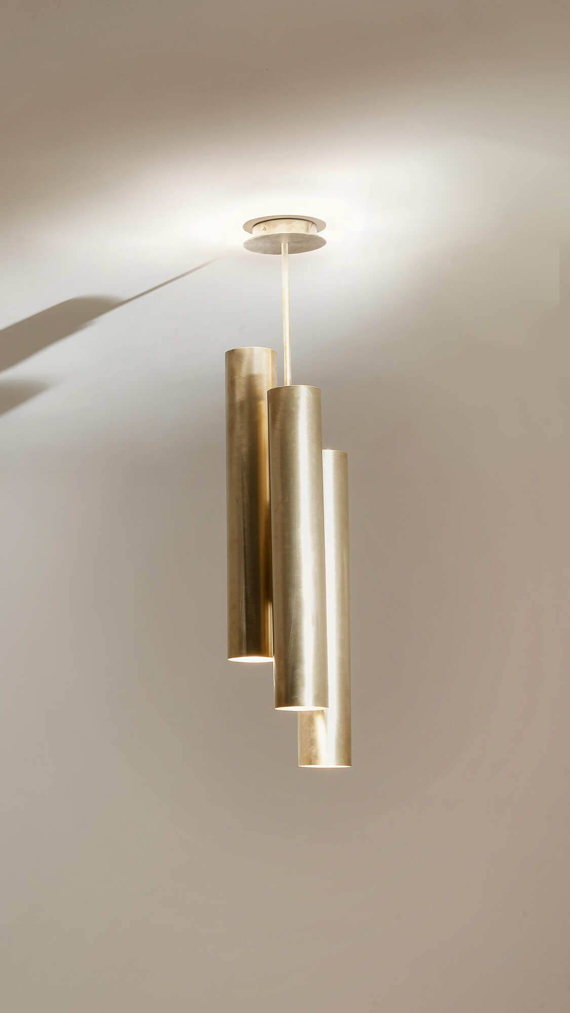 DL600 è una lampada da soffitto dall’aspetto forte e deciso. Tre cilindri realizzati in ottone satinato permettono alla luce di diffondersi in maniera precisa e puntuale.